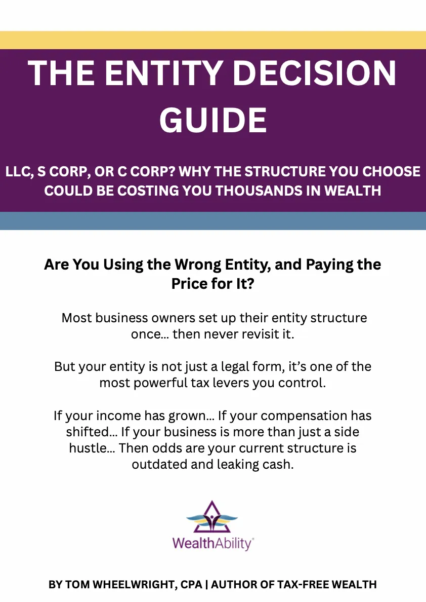Tom Wheelwright’s results, strategies, and experiences are not typical and are not a guarantee of your financial success. WealthAbility® does not promise or imply any guaranteed outcomes, whether in tax savings, wealth building, or business growth, based on the use of our education, systems, or services. Individual results will vary widely depending on factors including personal effort, financial situation, business model, and market conditions. All content presented on this website, including but not limited to tax strategies, videos, frameworks, and written material, is the intellectual property of WealthAbility®, LLC. Unauthorized use, reproduction, or distribution of any material without express written consent is strictly prohibited.